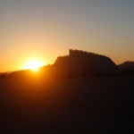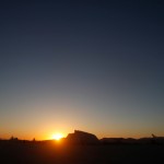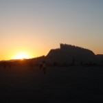 Je m’installe. Je suis loin d’être le seul à avoir eut cette idée. Une fois de plus, tout le monde converge. Le temple devient un point de ralliement pour cette dernière journée. Au loin, derrière moi, les restes de Man brûlent toujours. Le soleil est beaucoup plus long que je pensais à se lever. Il y a, évidemment, de la musique qui joue. Parfaite pour danser. L’ambiance est extrêmement particulière. Le levé de soleil est magnifique. Riche en intensité et en émotion. Moi qui ne suis pourtant pas très porté « spiritualité », j’ai vraiment l’impression de vivre une semaine extrêmement intense à ce niveau là. Je ne m’y attendais pas du tout, et j’en suis particulièrement surpris.