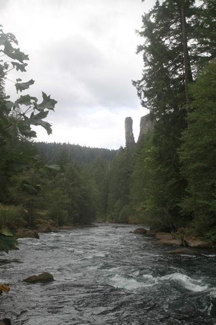 Je fais un dernier babaille à tout le monde par la fenêtre. Une fois de plus, je me sens vide. Peut être aurais-je du leur proposer ma compagnie quelques temps de plus. Ou peut être pas… La voix grave et reposante de Leonard Cohen m’accompagnera une bonne partie de la journée. Je ne suis pas d’humeur à grand chose aujourd’hui. La première idée était de m’arrêter à la première « grande » ville venue, pour faire réparer les freins. Mais en même temps, j’ai besoin de m’éloigner un peu. Juste avant que je parte, Clam expliquait sa théorie sur la « géo-solution » : les problèmes restent toujours là où on les laisse. Partir permet de se débarrasser de bien des problèmes. Ce n’est pas tout le temps une solution, mais je suis quand même assez d’accord avec lui. Et j’avoue que c’est un peu dans cet optique que j’ai envie de rejoindre l’océan ce soir. Mettre pas mal de kilomètres entre Umquat Hot Spring et moi même. La carte me confirme que je trouverais là bas aussi des villes pour faire réparer Pourquoi Pas ?. Je compte sur la roue pour ne pas s’en aller tout de suite.