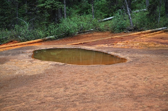 La première balade, c’est pour aller voir des « painting pot ». La terre est extrêmement argileuse dans le coin, et regorge de pigment qui lui donne une couleur ocre, utilisée comme pigment par les premières nations, puis par les premiers colons. Virginie en profite pour jouer à Pocahontas en se faisant plein de peintures de guerre. Je me contente de lire les panneaux et prendre des photos. À la vitesse où l’on va, prenant tout notre temps, s’arrêtant, regardant, les 20-30 minutes se transformer en une bonne heure.