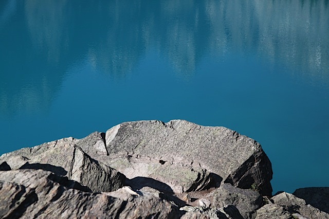 Les lacs des rocheuses sont vraiment magnifiques de part les différentes tintes qu’ils sont capables d’avoir. Lac Louise est d’un bleu « eau qui a servi à nettoyer des pinceaux » ; Moraine, lui, est d’un bleu beaucoup plus inspirant, beaucoup plus naturel. Il donne envie de s’y baigner. Je n’essaie pas. Virginie, elle, trempe un orteil, et me confirme que j’ai raison de ne pas essayer.