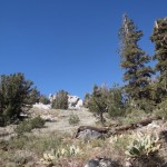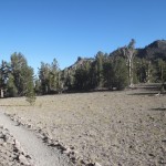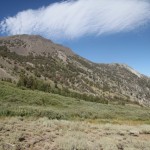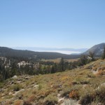 Et puis au moment de passer un col, il y a un grand parking, et un départ de randonnée. Intrigué, je m’arrête. J’ai envie de marcher ; je n’ai pas eut mes montagnes ce matin, je vais jeter un oeil aux panneaux de description. Le départ est à 2685m, l’arrivée à 3284m. 600 mètres de dénivelés, donc, en 15.5 kilomètres. Ils recommandent 5h, Je regarde ma montre, c’est parfait, j’aurais juste le temps de revenir avant que la noirceur s’installe. Et ça me permettra de vérifier si je suis toujours en forme. Après tout, le Half Dome m’attend à Yosemite.
