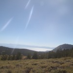 La route en direction du lac Tahoe monte vite dans la montagne. La pleine s’étale rapidement. Je quitte le paysage aride pour me retrouver dans une zone boisée. Les effets météos de cette barrière de montagnes sont vraiment faciles à voir… la plaine asséchée, alors que la montagne a le droit à des arbres magnifiques.