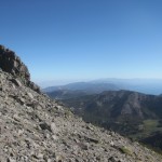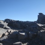 Et surtout, plus on monte, plus le vent est fort. Ça faisait longtemps que je ne m’étais pas trouvé dans des rafales aussi fortes. D’ailleurs, je me demande si ça m’était déjà arrivé… une chose est sûre, c’est la première fois que j’ai à forcer pour ralentir alors que je marche en montant ! Quand le vent est de côté, je marche incliné à 30 degrés environ… quand le vent est de face, j’ai du mal à avancer. Quand il est de dos, j’ai besoin de m’arcquebouter pour ne pas aller trop vite. C’est limite désagréable, mais ça n’en reste pas moins une expérience intense. Et puis soudainement, quand on arrive au sommet, alors qu’il n’y a plus rien pour protéger du vent, celui-ci disparaît. Je l’entends encore, je le sens encore un tout petit peu, mais il n’est quasiment plus là. Je redescends de quelques mètres, il est à nouveau aussi fort. Je remonte, il n’est quasiment plus là. J’avais déjà marché au dessus des nuages… je ne savais pas qu’il était possible de marcher au dessus du vent !