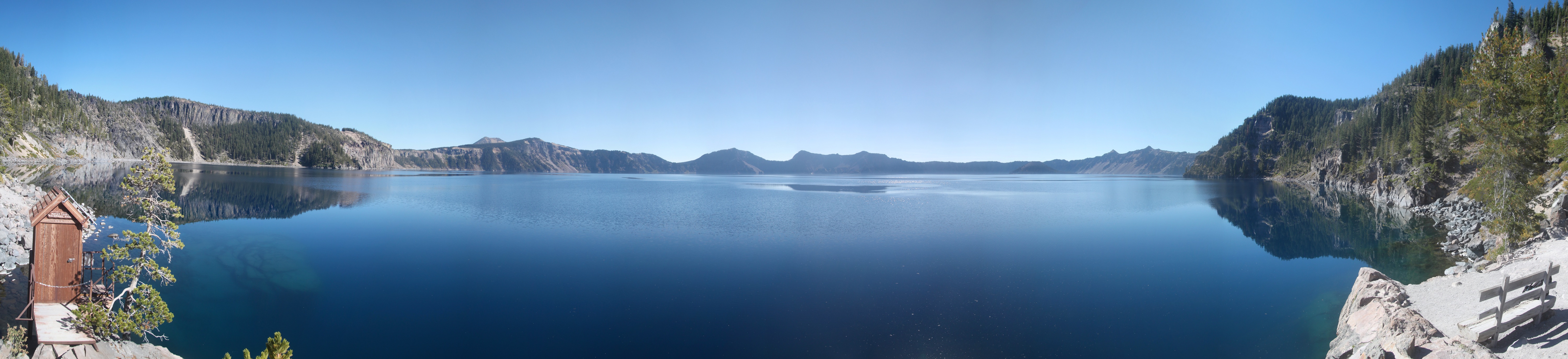 Non, le petit bâtiment à droite, ce ne sont pas des toilettes, mais l’endroit où ils mesurent la hauteur du lac. Et oui, le banc à droite, c’est un banc.