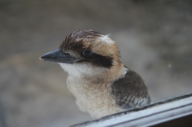 En fait, c’est simplement un idiot d’oiseau local qui s’était exploser la tête sur la vitre. Alors même que les stores étaient fermés à l’intérieur. Enfin, il est idiot, peut être, mais il est bien joli. Alors j’en ai profité.