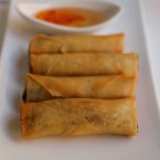 On continuera avec un petit assortiment d’entrée. Rouleaux de printemps végétariens particulièrement goûteux, accompagnés d’une petite sauce aigre douce des plus agréable. Deux ou trois autres petites choses, aussi, que j’ai bêtement oublié de prendre en photo. Le « Fish Cake » est, lui aussi, particulièrement bon.