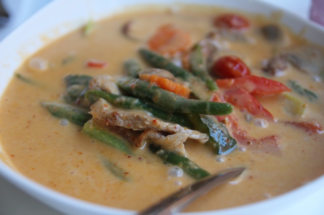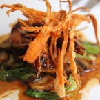 Ma poitrine de canard rôtie lentement dans une sauce rouge au curry, tomate, ananas est un pure délice. La présentation est superbe, et la sauce est épicée à la perfection. Les crevettes géantes d’Iris, avec champignon, riz, ail, poivre noir et flocon de chillis sont tout simplement magnifique. Un régal autant pour les yeux que pour le palais.