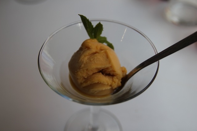 On terminera le tout avec une petite boule de sorbet à la mangue. Parfaite pour digérer après un repas au final bien consistant. On est ravis de l’expérience. On garde l’adresse dans un coin de la tête avec l’intention manifeste d’y retourner. Surtout qu’en fait, une entrée chacun et un plat partagé, ça suffit largement pour deux.