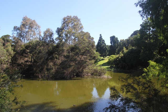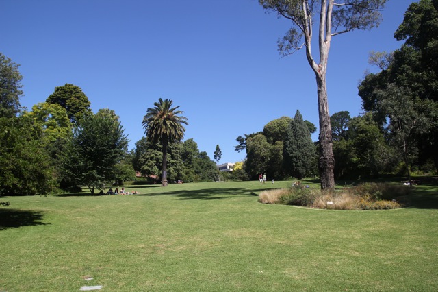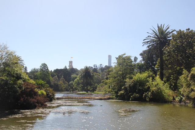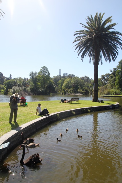 Pour en revenir à cette histoire de jardin botanique, celui de Melbourne est assez différent de celui de Sydney. Plus de reliefs, un grand lac au milieu, une végétation peut être un peu plus dense et plus variée, mais en même temps des animaux beaucoup plus discrets. Ce qui me paraît d’ailleurs général dans toute la ville. Moins de cris d’oiseaux qui font que l’on se retourne en se demandant ce qui nous arrive et qui est en train de se faire égorger ! Quoi qu’il en soit, on retrouve à Melbourne comme à Sydney des endroits particulièrement magnifiques, où l’on a juste envie de se poser dans l’herbe pour ne rien faire.