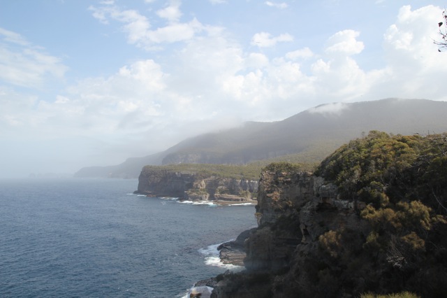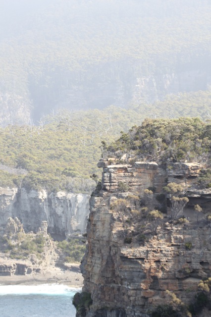 En fait, cette balade peut se prolonger. Pendant des heures, et des heures et des jours. Il y a une randonnée qui, partant d’ici, vous emmène jusqu’à Cape Pillar, beaucoup beaucoup plus loin. Il faut, en fait, compter 6 jours aller-retour pour la faire. Il y a aussi une option plus courte, qui commence un peu plus loin, et qui ne demande que trois jours aller-retour. Tout cela me travaille, et me fait rêver. Même si, en même temps, je préférerais une boucle. Ou un aller simple avec quelqu’un qui me récupèrerait à l’arrivée. Peut être ailleurs ; peut être une autre fois.