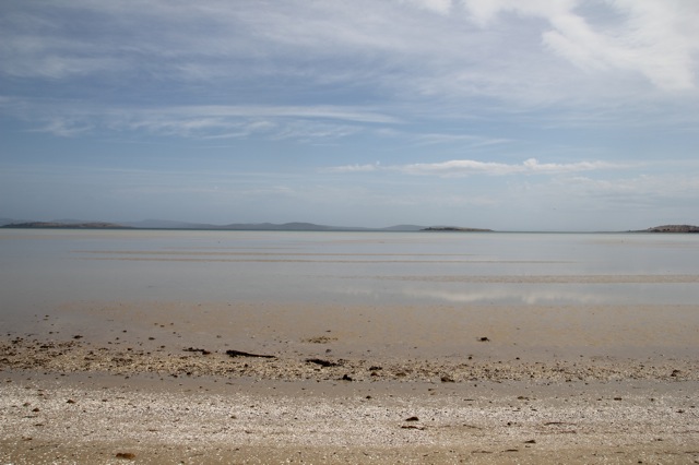 Mais commençons par le commencement. Pour se rendre sur la péninsule de Tasman, il faut d’abord traverser une première péninsule, dont je ne connais pas le nom, mais qui offre quelques beaux paysages, qui sont parfaits pour se mettre en bouche. On commence à s’habituer aux magnifiques plages tasmaniennes, mais on ne s’en lasse pas. Surtout quand à marée basse on peut presque marcher sur l’eau tellement il y en a peu profond.
