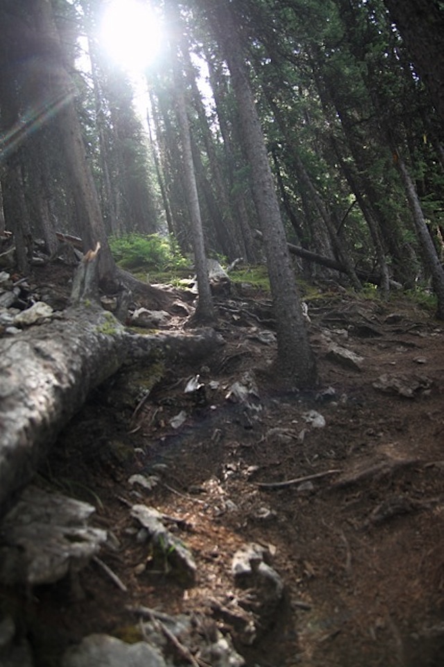 Je finirais pourtant par faire une pause après un moment, ne voyant personne en arrière, alors que le chemin fait des lacets assez serrés. Louise me rattrapera après un certains temps, pour me dire qu’on aura juste à attendre Liz et Jeff à la limite des arbres. Je lui donne rendez-vous là bas également, et repars.